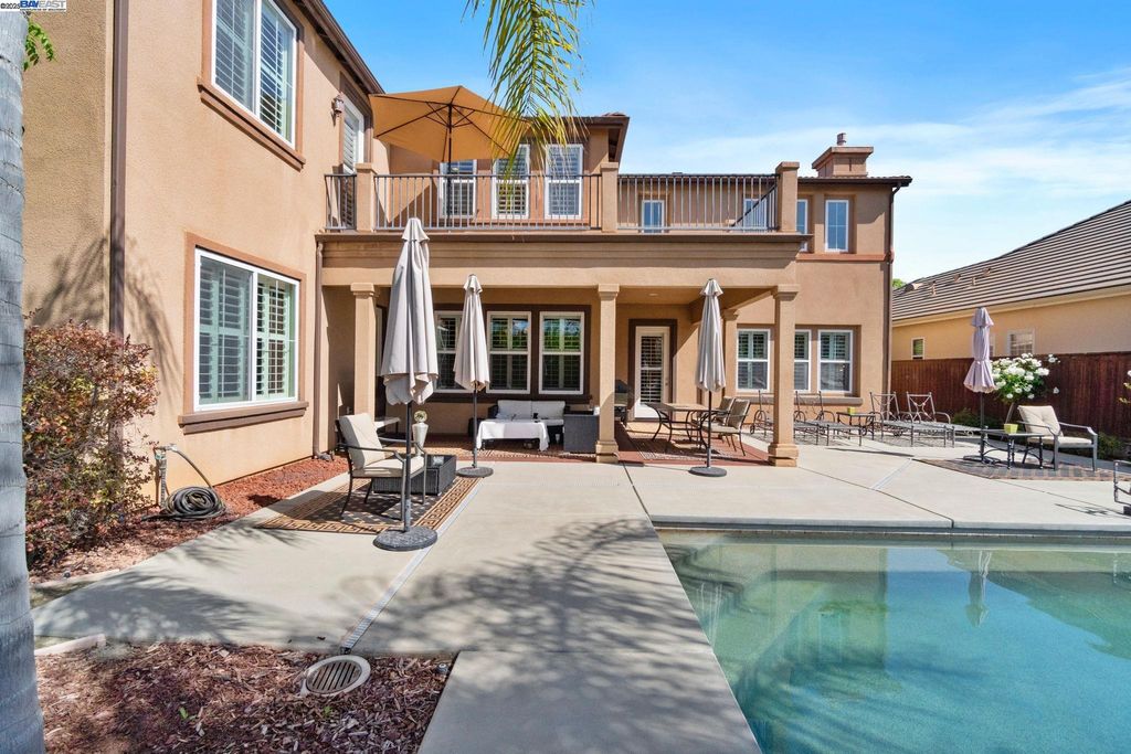 ON THE WATER! Welcome to this stunning 4 bed, 4 bath, 3-car garage Montego floorplan with over 3,800 sq.ft., perfectly set in the premier 57-acre, gated Quail Lake community. Designed for legacy living, this home rests on a 10k sq.ft. lakefront lot offering timeless craftsmanship & unmatched amenities. Enter through the private courtyard and be greeted by soaring 14-ft ceilings, abundant windows & elegant formal spaces including a parlor with fireplace, dining room with built-ins & a gourmet kitchen with massive granite island, cherry cabinets, butler's pantry, SS appliances & 6-burner cooktop - all opening to the family room with spectacular lake views. The main level features a private guest wing with bed and full bath, plus a spacious laundry. Upstairs, the expansive master retreat awaits with sitting area, spa-style bath & a private balcony with breathtaking views. Additional ensuite & guest bedrooms offer comfort and privacy for the whole family. Step outside to an entertainer's paradise: sparkling LED-lit pool with waterfall, custom hardscape, jumbo covered patio & your own boat dock. Plantation shutters add elegance throughout. Enjoy Quail Lake's lifestyle - clubhouse, Olympic-size pool, trails, 24/7 security, and top-rated Charter School - all just steps away!