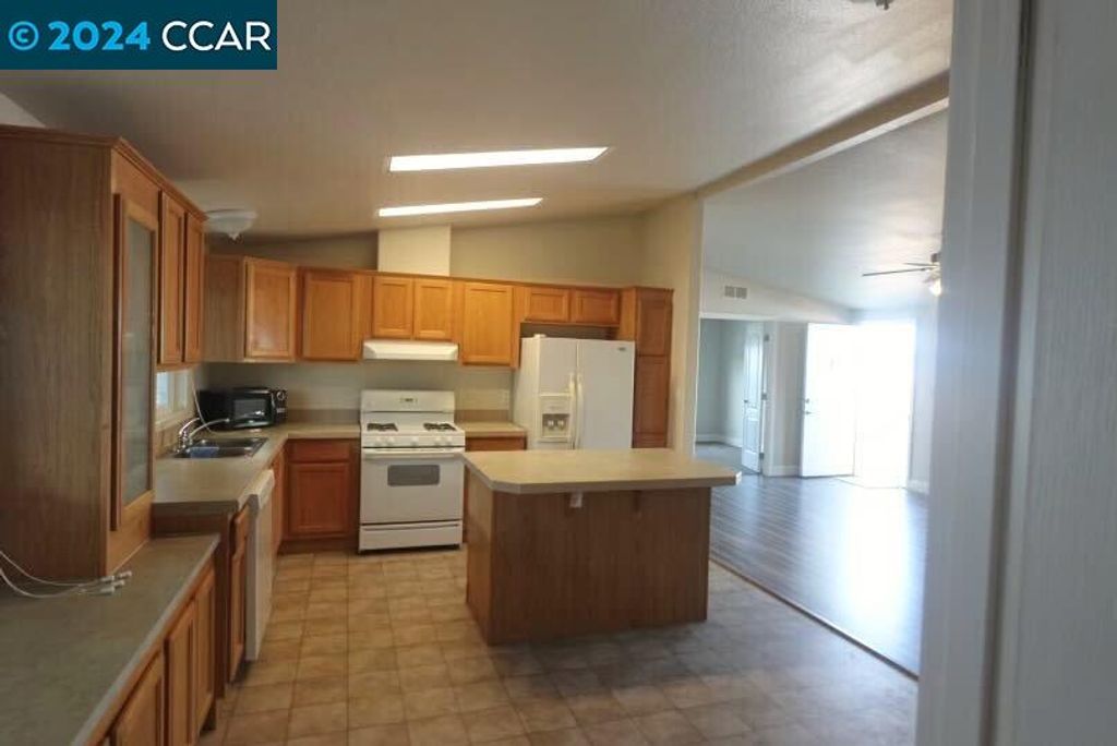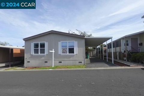 This double wide 2 bedroom, 2 bathroom (+ an office) Mobile Home sits in the Tara Hills Mobile Manor 55+ community in San Pablo. Built in 2004, this spacious mobile home boasts a large kitchen containing a dining area, an island with a breakfast bar, and vaulted ceilings which opens up to the even larger living room. With plenty of cabinet and cooking space, you'll be exited to have the grandchildren over. The living room and halls have newer laminate flooring, with new carpet in the bedrooms. The interior was also freshly painted late in 2023. The large primary bathroom has an easy access shower stall and large vanity. The primary bedroom offers vaulted ceilings w/ ceiling fan and double sliding door closet. With another bedroom and a bonus office, this home feels larger than 1,140sqft. HOA Amenities include a heated pool, large hot tub, saunas, billiard room with 4 tables, and a large clubhouse with a fireplace. The Tara Hills Park complex location as close as you can get to the San Pablo Bay, sitting close multiple parks and walking trails, such as Pinole Shores Park, and Point Pinole Regional Shoreline. With easy access to shopping and major roads and freeways. You'll have endless opportunities for outdoor and activities. Don't miss this awesome community and location!