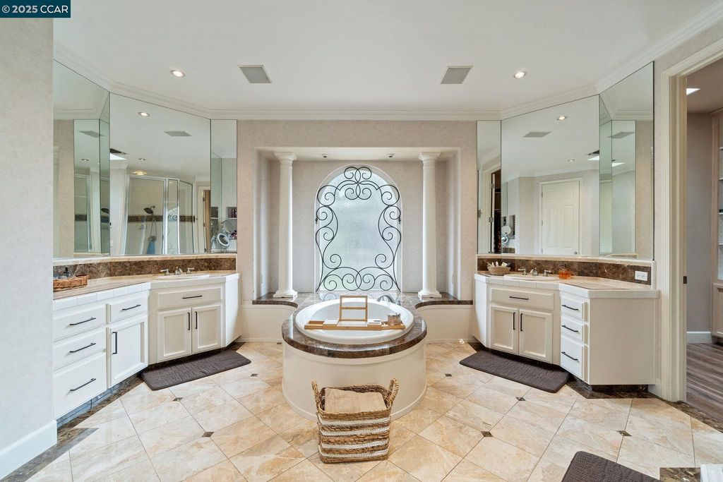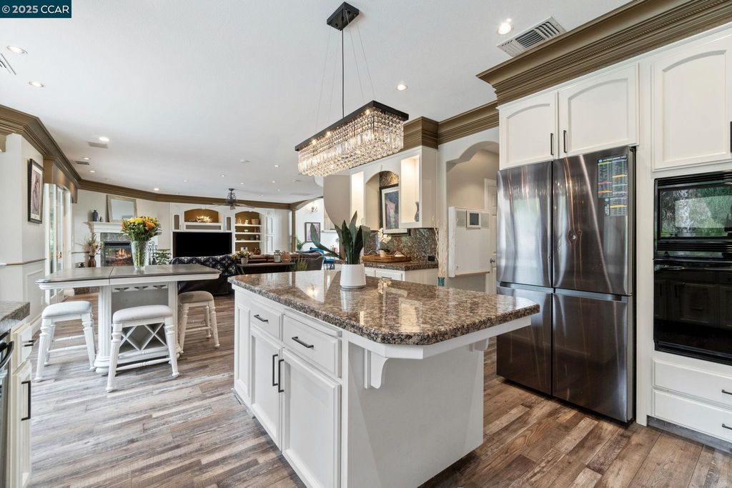 Short Sale Opportunity! Welcome to this custom masterpiece, where luxury & elegance blend seamlessly. The home greets you with dramatic, towering windows that nearly stretch from floor to ceiling, flooding the space with natural light and framing the grand entryway. Marble floors and a stunning marble staircase ascend beneath soaring ceilings accented by soft taupe tones and stately pillars. Step into the gourmet kitchen, where custom cabinetry, a crystal chandelier, and granite countertops are beautifully complemented by four layers of crown molding. This space flows effortlessly into the living room, featuring built-ins and a cozy fireplace, perfect for gatherings or relaxation. Upstairs, the first bedroom opens to a private balcony through French doors, complete with an ensuite bathroom. Two additional bedrooms share a thoughtfully designed Jack-and-Jill bathroom. The primary suite, set behind elegant double doors, is a sanctuary with its own fireplace, spa-like bathroom featuring a soaking tub, dual vanities, and two expansive walk-in closets. For added convenience, an upstairs laundry room awaits, along with a versatile garage space ideal for a workshop or gym. Outside, the backyard oasis invites you to unwind by the sparkling pool, complete with a cascading waterfall. Thro